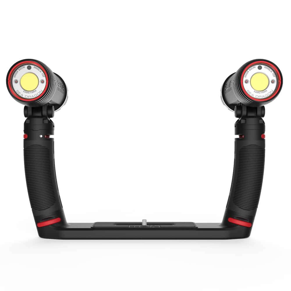 With the included Flex-Connect Dual Tray, Grips and dual Sea Dragon 3000F light heads, youll increase camera stability and add brightness and brilliance to your photos and videos.